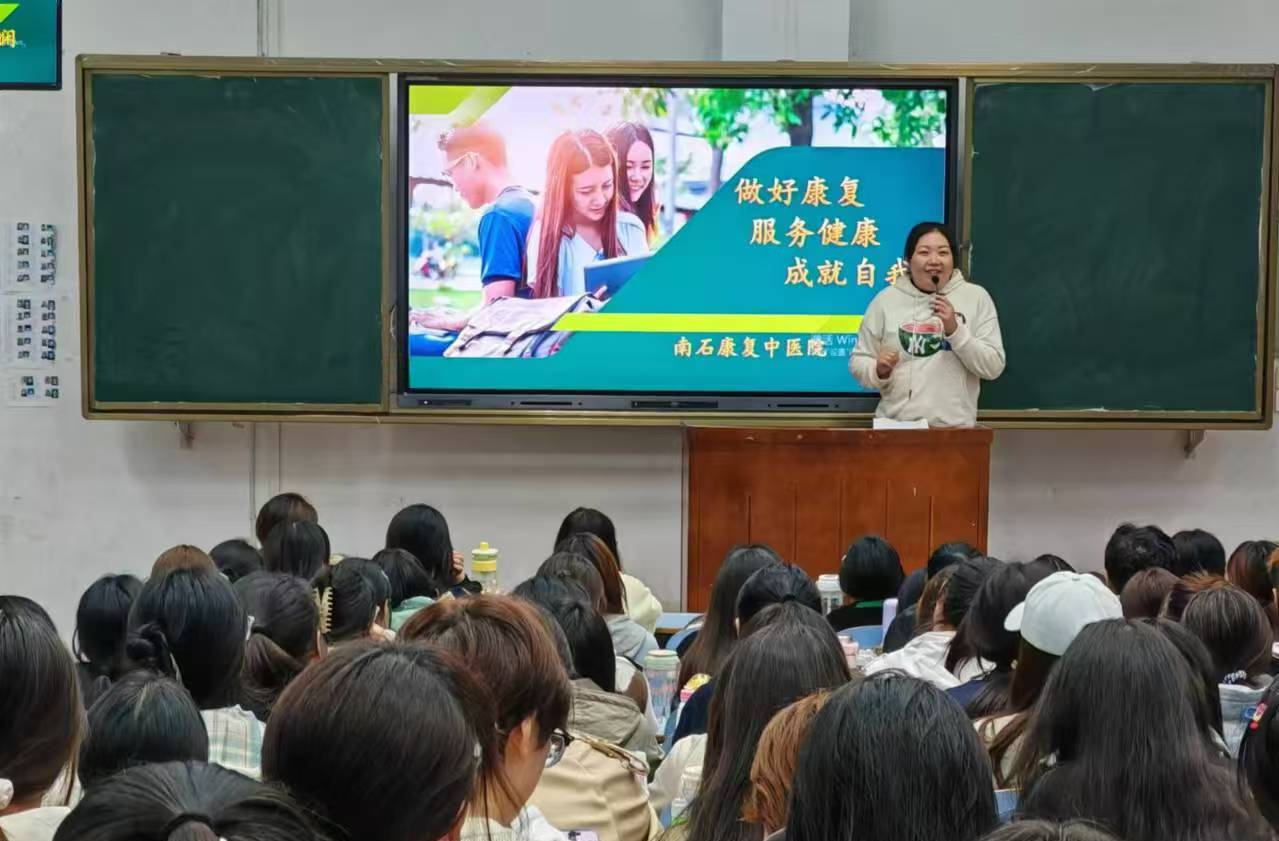 李娴医生以《做好康复,服务健康,成就自我》为题,从“当前康复治疗专业需求”、“康复治疗师的职业准备”、“康复治疗师的未来展望”三个板块结合自身求职经历、奋斗历程和职场心得,为同学们的职业发展之路提供了启发和思考。