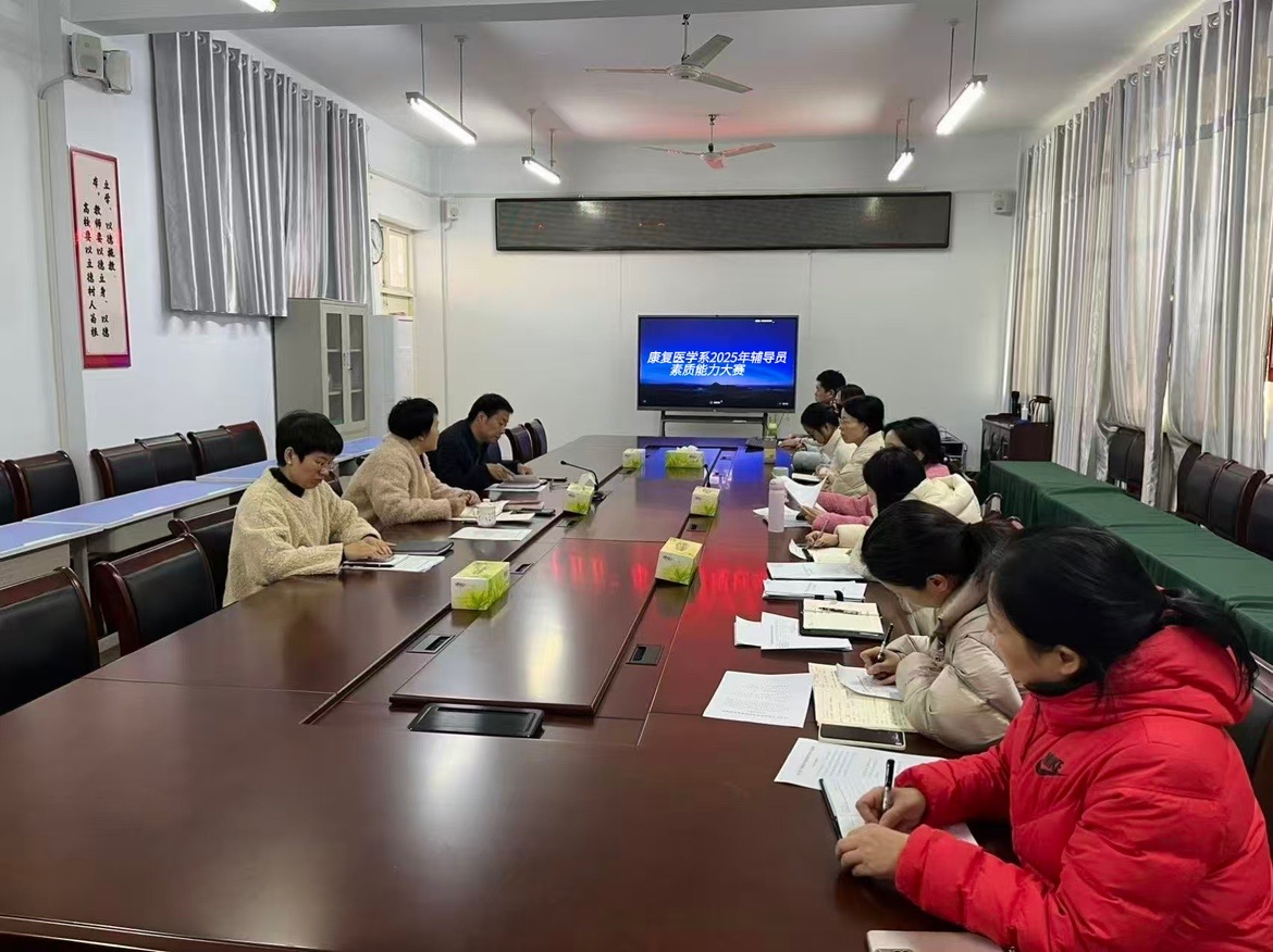 为深入学习宣传贯彻习近平新时代中国特色社会主义思想和党的二十大精神,突出以赛代练、以赛代训,强化以赛促学、以赛促建,不断提升我系辅导员的理论水平、职业能力和专业素养,推动我系辅导员队伍人才梯队建设,11月12日,康复医学系在1号教学楼四楼会议室组织开展2025年康复医学系辅导员素质能力大赛。党总支书记张立润、系主任吴俊晓、副主任陈红出席大赛,全体辅导员参加。
