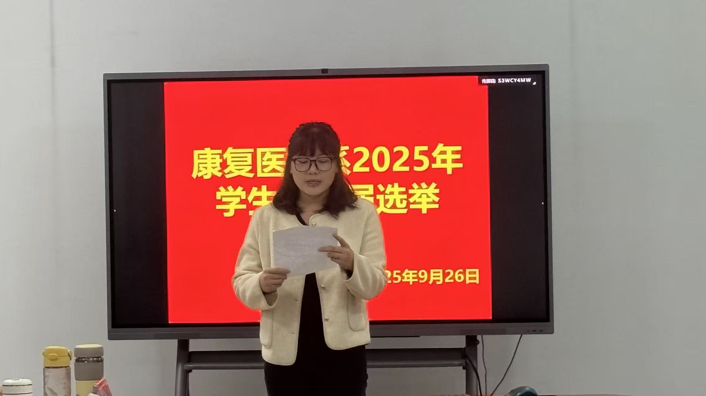 根据《宛医专团关于开展2025—2026学年学生届选举工作的通知》,在康复医学系党总支的领导下,康复医学系团总支在2025年9月26日下午四点半在1号教学楼4楼会议室开展第四届学生代表大会,并组织第四届学生会换届选举工作。康复医学系党总支书记张立润、党总支副书记苏芳静、系副主任陈红出席会议,相关学生会部门负责老师和学生代表参加会议。学工办主任曾兰晴主持会议。