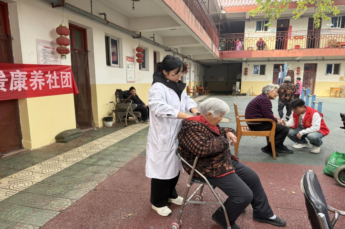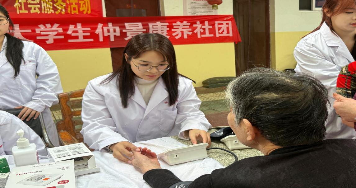 仲景康养社团志愿者化身“健康守护员”,为老人测血压、查血糖,结合专业讲解慢病预防与养生技巧,提供科学饮食作息建议;在老师指导下,以温和灸疗法缓解老人关节酸痛、畏寒乏力、睡眠不佳等问题,细致服务获得老人们的一致称赞。